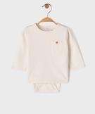 Ce tee-shirt body pour bébé séduit par son design 2 en 1 ultra pratique. Un véritable body en coton fermé par des boutons pression à l’entrejambe, recouvert d’un élégant tee-shirt à manches longues avec fausse poche poitrine ornée d’un petit bouton effet bois. Il possède un col rond souligné par un biais en bord-côte et se ferme par des boutons pression dans le haut du dos. Une pièce pratique et ingénieuse à associer à tous les shorts et pantalons du vestiaire des bouts de chou.