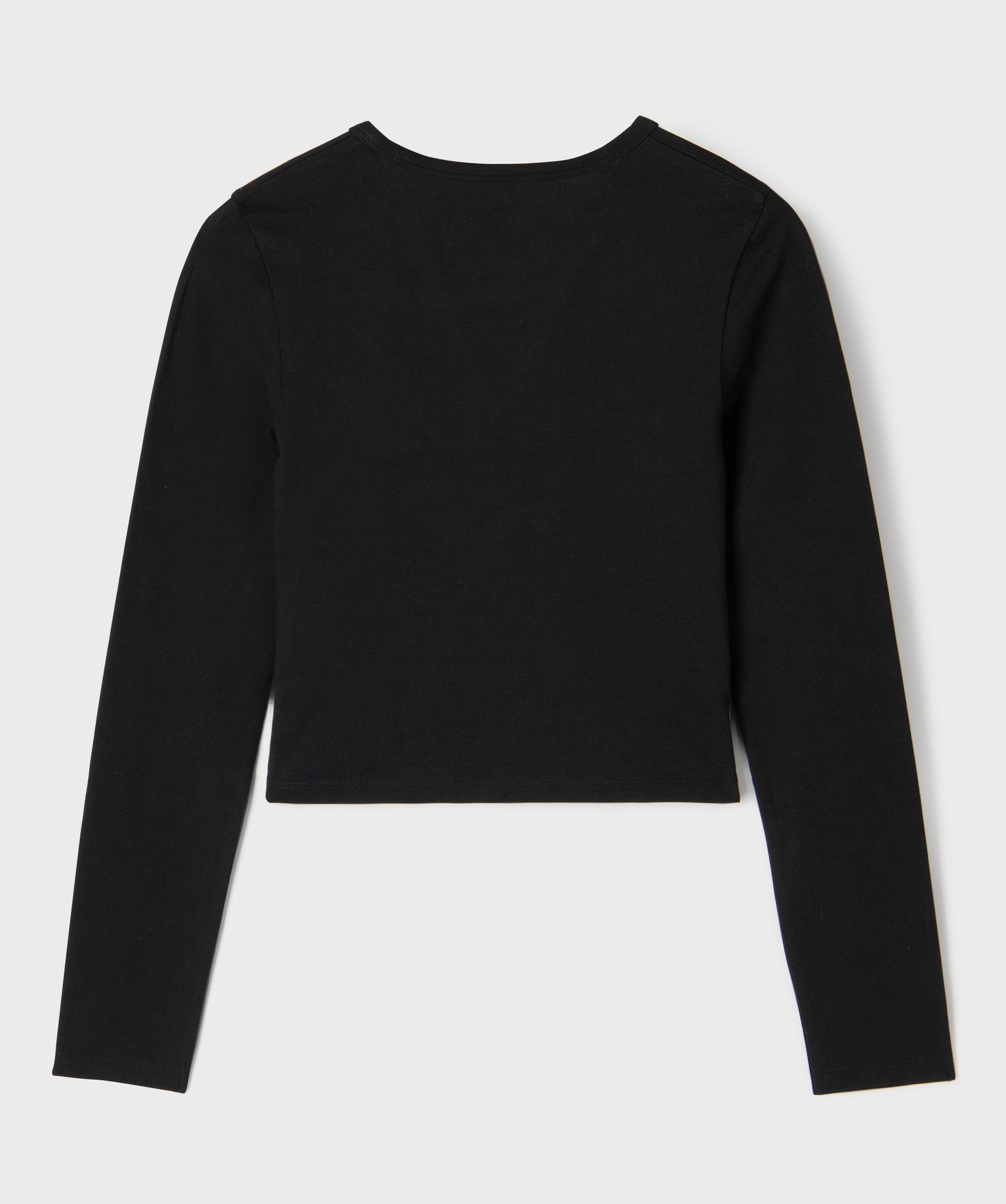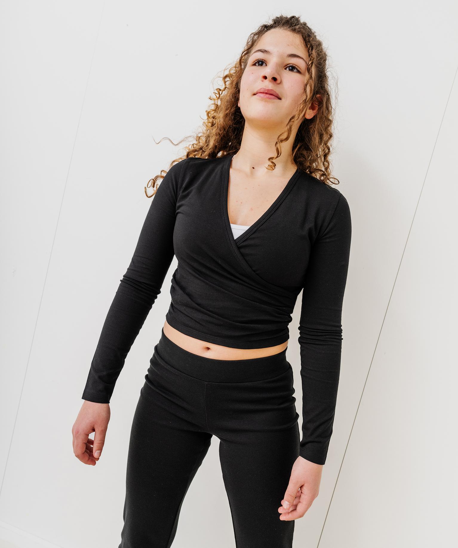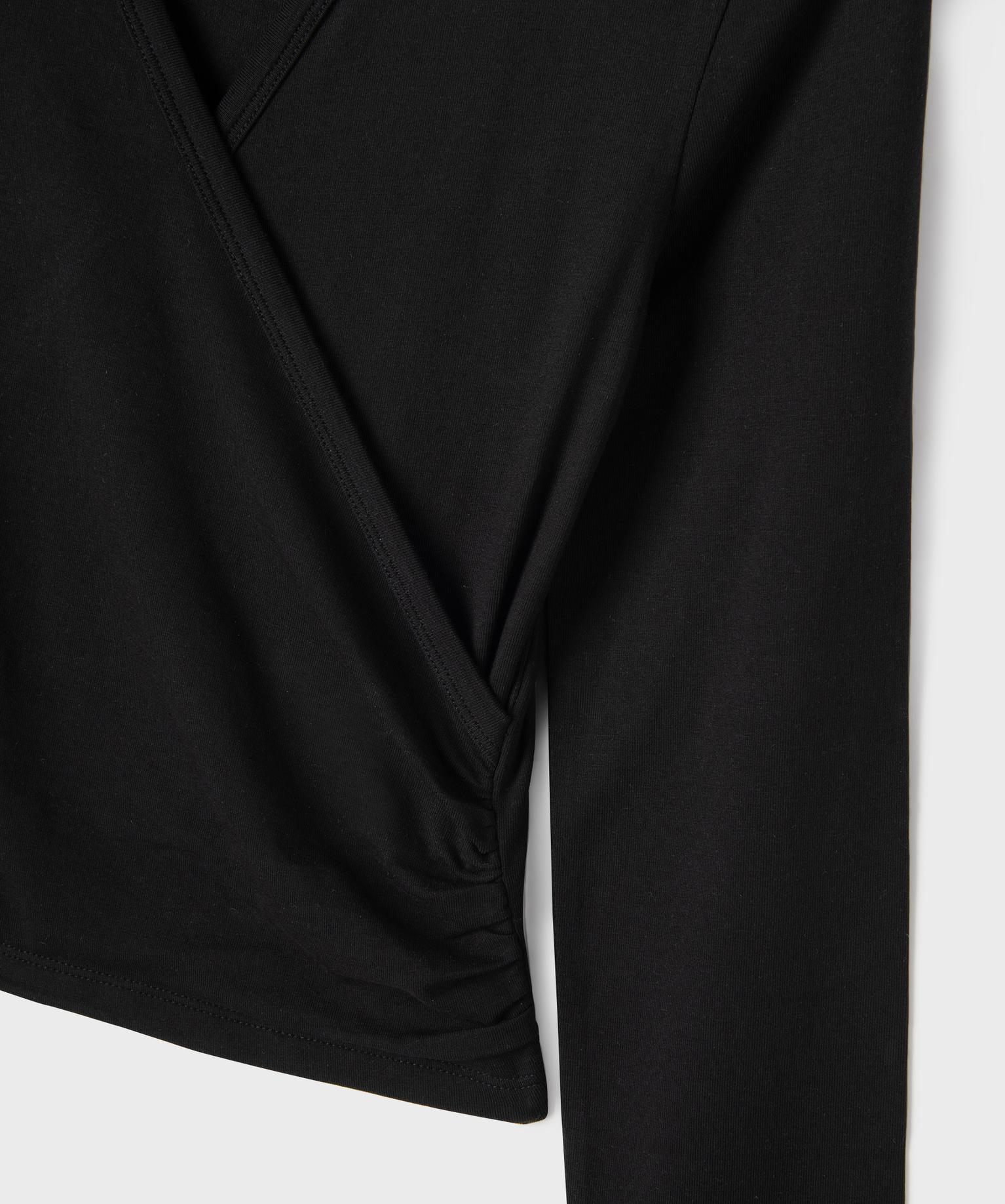 Le cache-cœur... Une pièce féminine et adorable revisité en version tee-shirt fille pour être encore plus facile à vivre ! Le tee-shirt manches longues se distingue par sa coupe croisée devant, froncée sur le côté et son décolleté en V. Confortable et élégant, le t-shirt s’adapte à tous les styles. À associer à une jupe fluide ou un pantalon taille haute pour un look moderne.