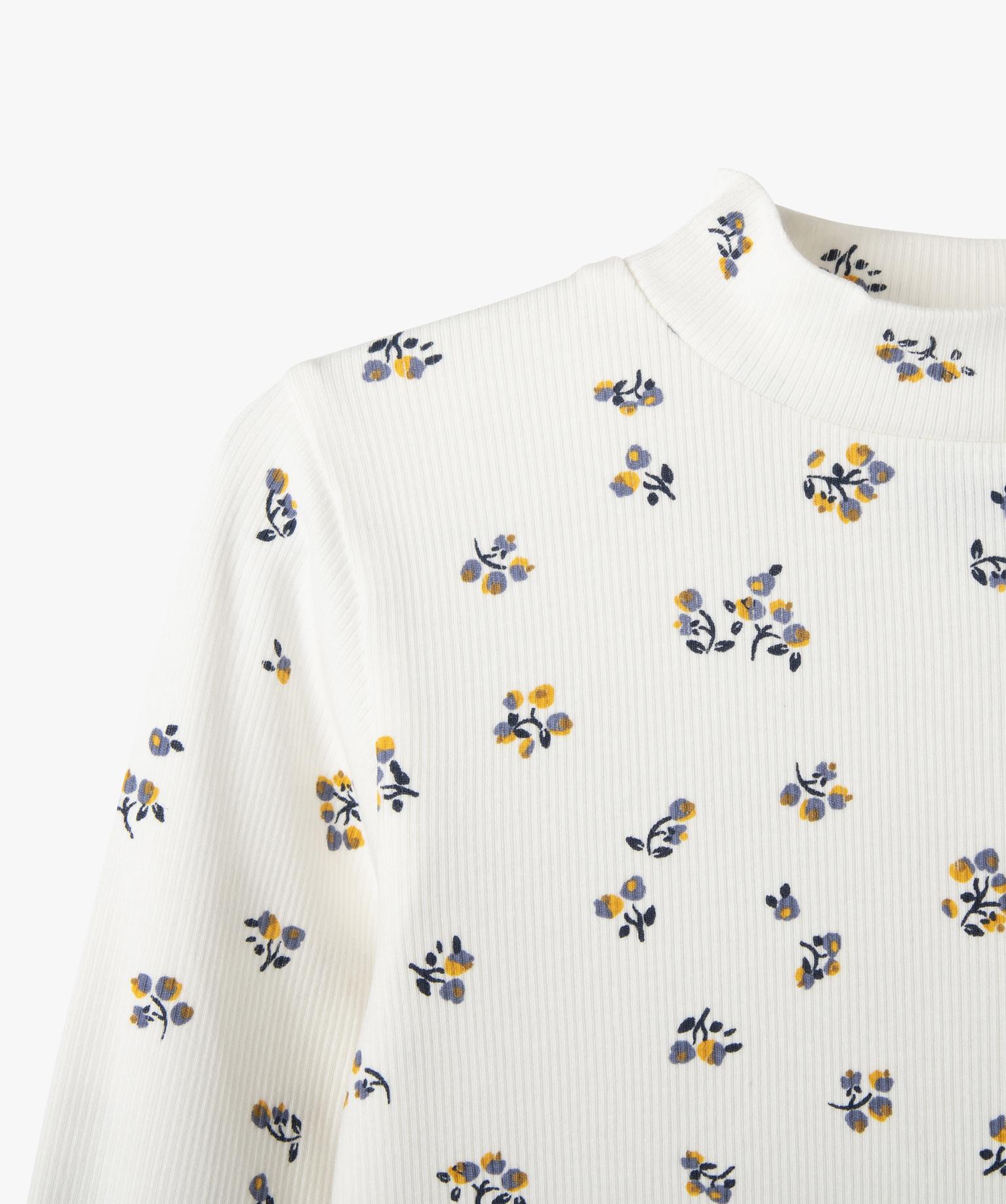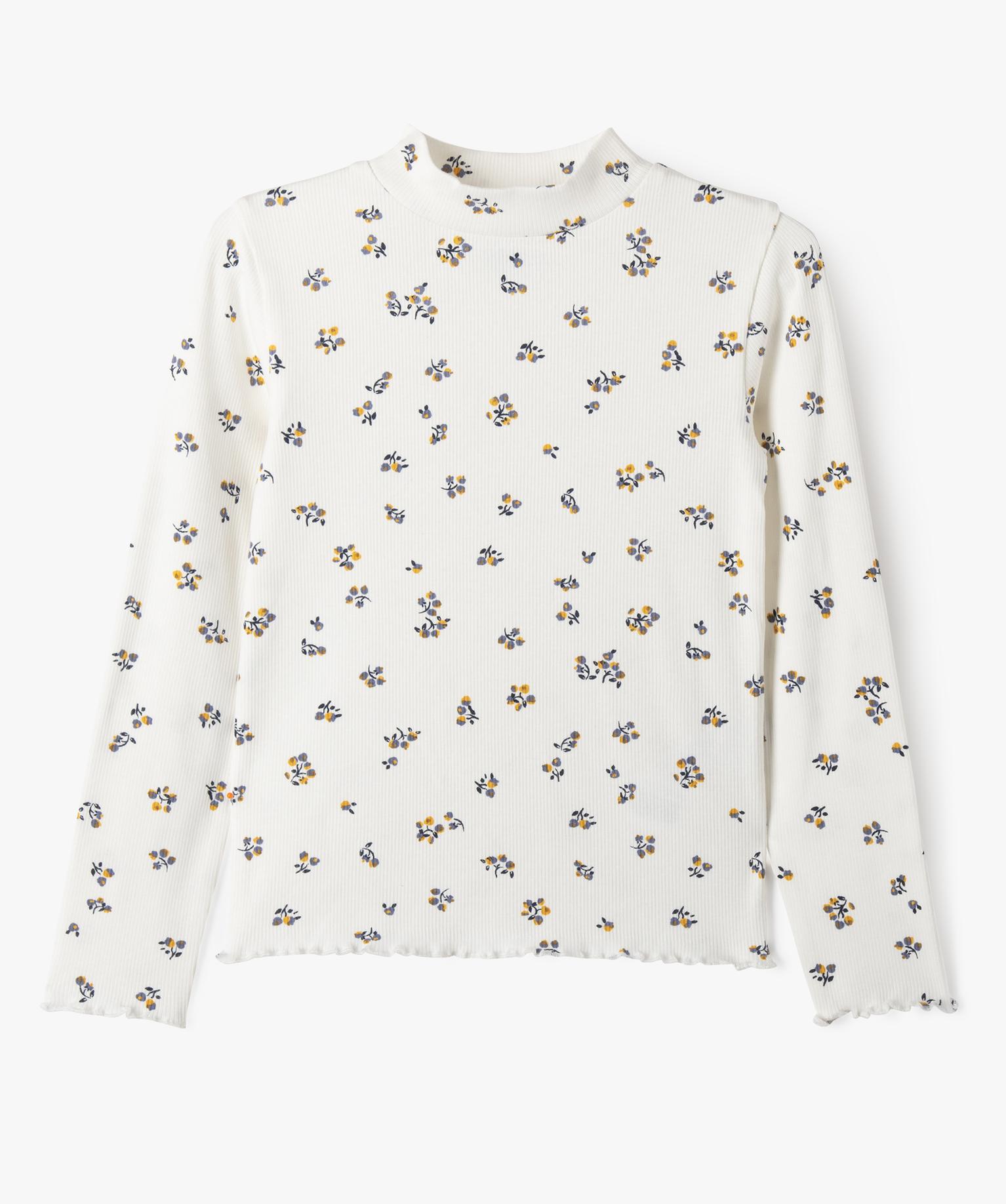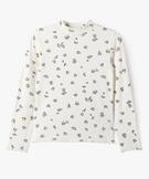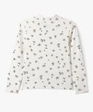 Tee-shirt manches longues col montant en maille côtelée fille blanc chine