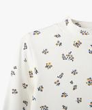 Un ravissant tee-shirt à manches longues parsemé de fleurs ou de motifs pailletés, idéal pour mettre une touche de romantisme dans les tenues de votre enfant. Ce tee-shirt fille affiche une coupe près du corps, très confortable grâce à sa maille côtelée extensible. Il présente un petit col montant et une finition roulottée toute mignonne en bas de manche et à la base. Un haut à porter seul ou sous une robe, une salopette.