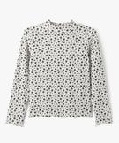 Un ravissant tee-shirt à manches longues parsemé de fleurs ou de motifs pailletés, idéal pour mettre une touche de romantisme dans les tenues de votre enfant. Ce tee-shirt fille affiche une coupe près du corps, très confortable grâce à sa maille côtelée extensible. Il présente un petit col montant et une finition roulottée toute mignonne en bas de manche et à la base. Un haut à porter seul ou sous une robe, une salopette.