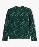 Tee-shirt manches longues col montant en maille côtelée fille vert