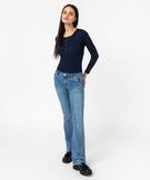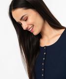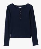Tee-shirt manches longues col tunisien en maille côtelée femme navy