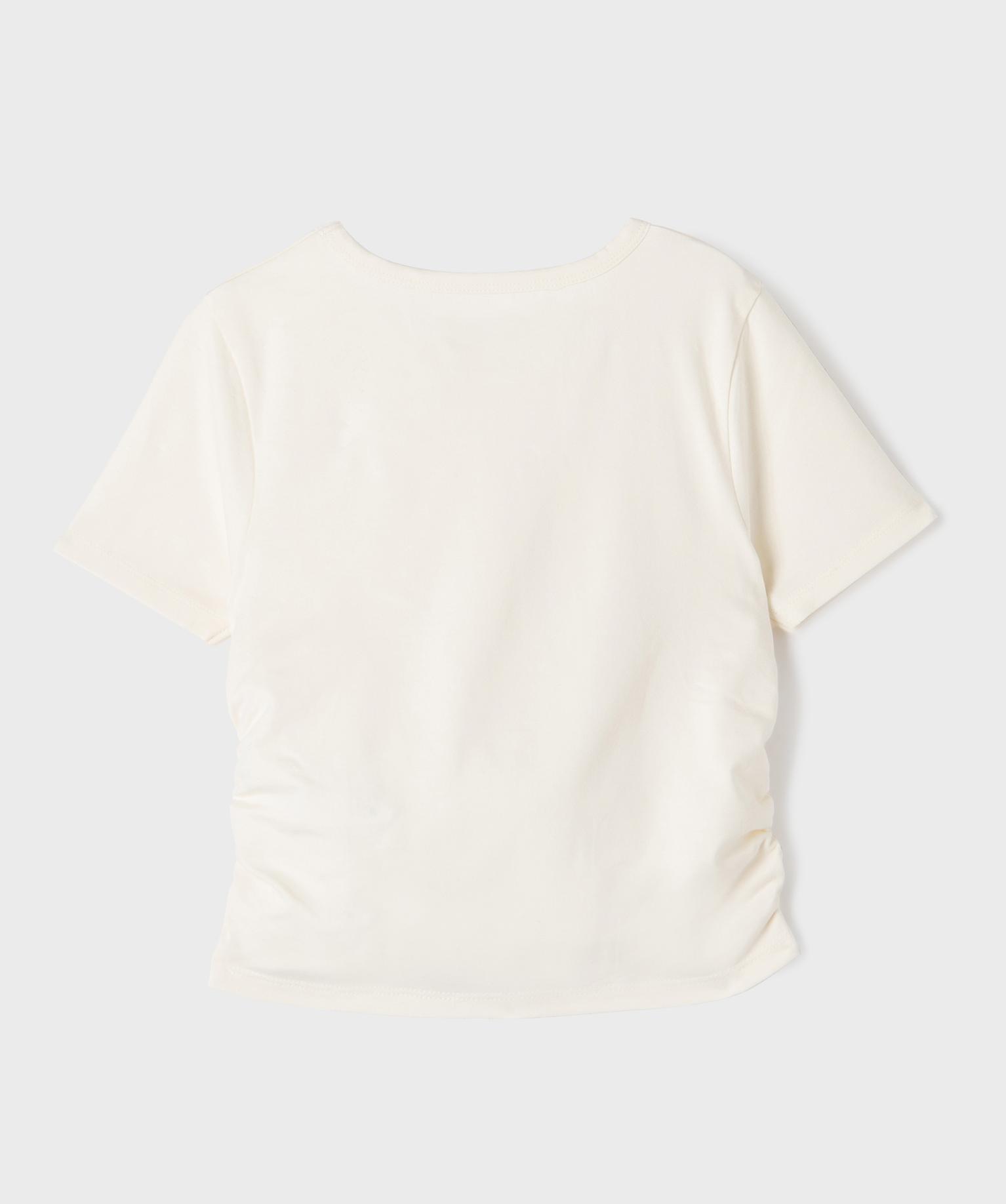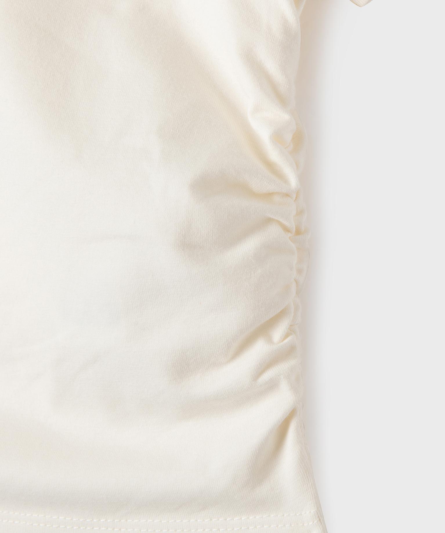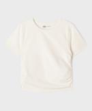 Tee-shirt manches longues coupe courte avec devant froncé fille ecru