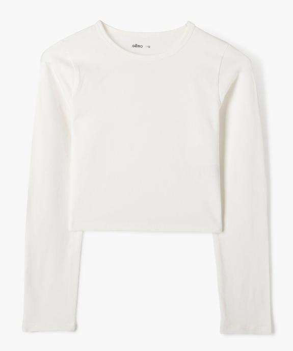 Le crop-top est la pièce préférée des ados ! Ce tee-shirt à manches longues séduira les filles par sa coupe courte ultra stylée. Confortable, ce tee-shirt fille est confectionné en coton extensible qui épouse parfaitement la silhouette. Il arbore un col rond bordé par un biais. Un tee-shirt court à porter avec un jean large et des baskets pour une allure urbaine ou sous une salopette.