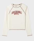 Ce tee-shirt fille à manches longues offre une coupe courte et ajustée, près du corps. Il est confectionné dans une matière extensible pour plus de confort. Son col rond et ses emmanchures raglan assurent une grande liberté de mouvement et une allure sportive. Mais le tee-shirt est twisté par des coutures visibles et contrastantes, et un motif d'inspiration western imprimé devant. Un top à la fois pratique et original, facile à porter au quotidien avec un jean flare taille haute ou un pantalon de jogging oversize. Dos uni. Col en bord-côte.