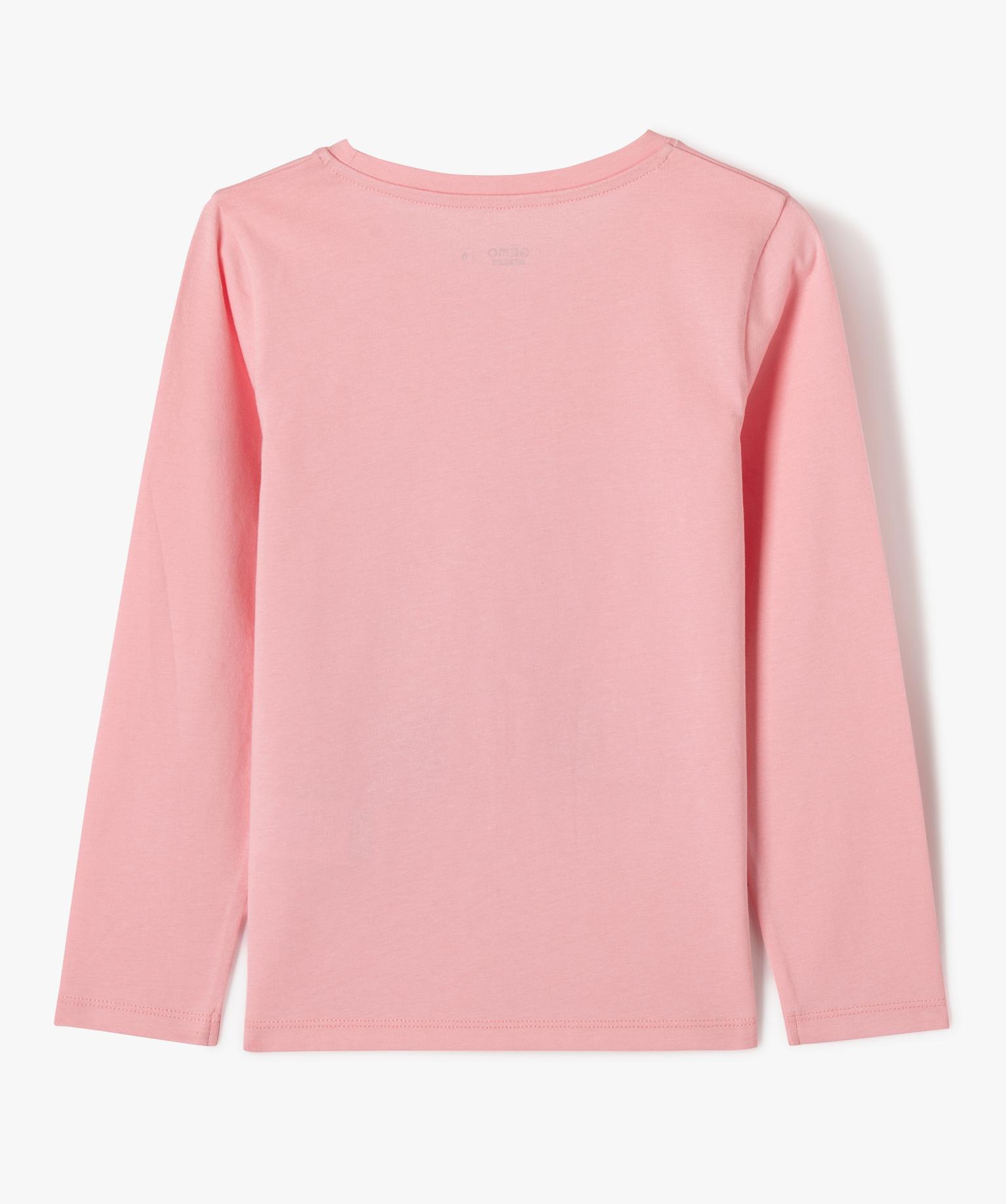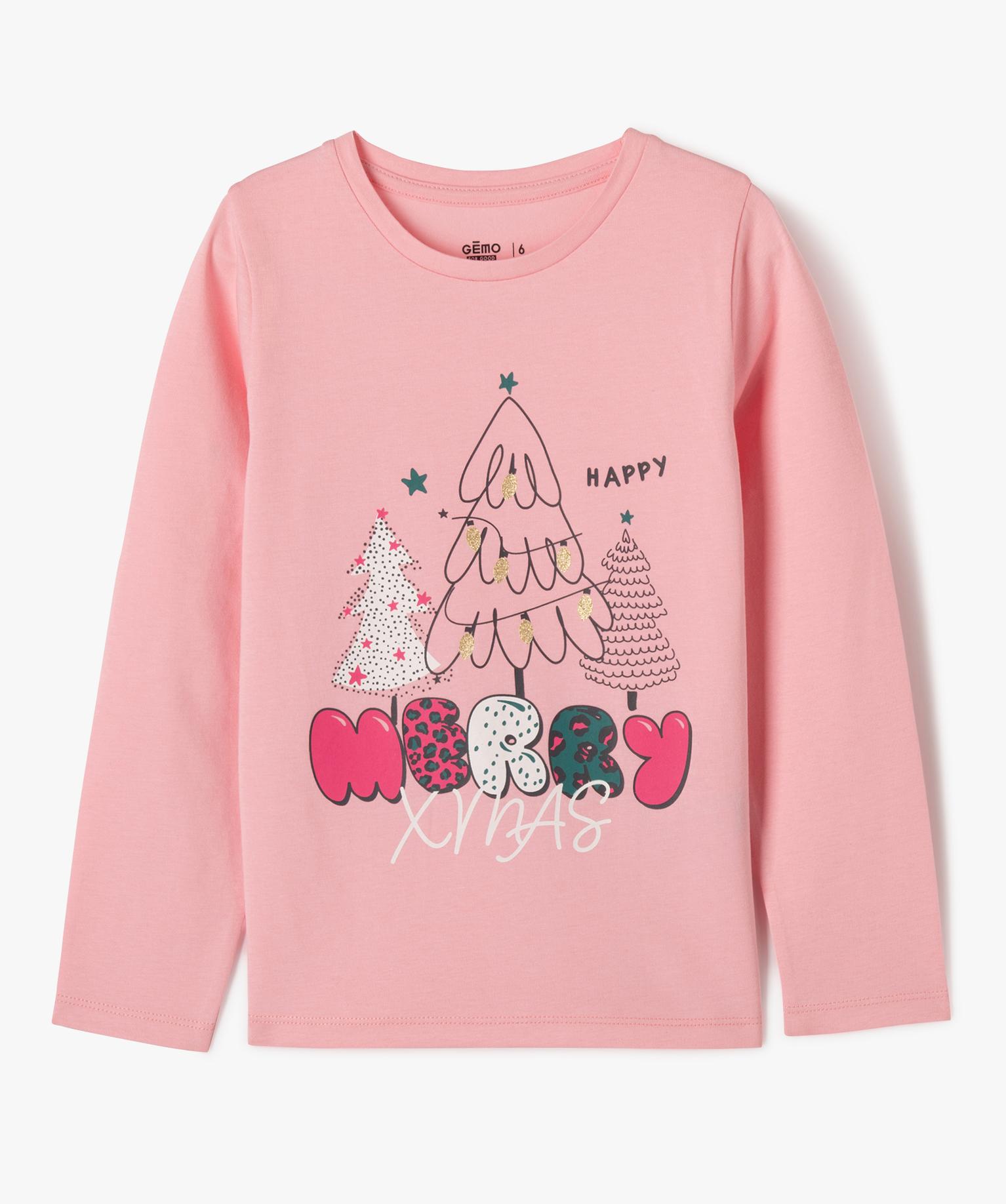 Tee-shirt manches longues de Noël en coton imprimé fille rose