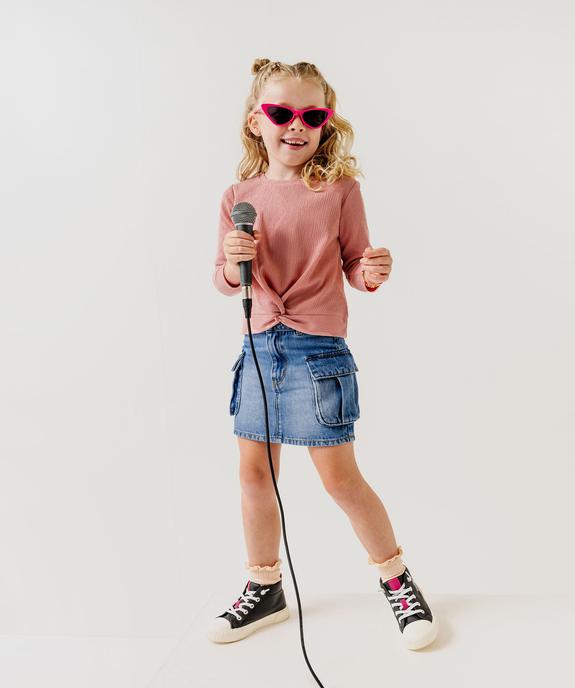 Ce tee-shirt à manches longues est la pièce parfaite pour assurer aux petites filles une allure élégante tout en leur offrant un maximum de confort. Ce tee-shirt fille séduit par sa maille texturée extensible et son effet noué dans le bas. Un top délicatement sophistiqué à porter avec un pantalon en toile et une paire de ballerines. Col rond. Large biais dans le bas.
