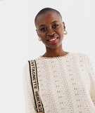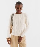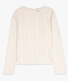 Tee-shirt manches longues en dentelle extensible femme ecru
