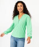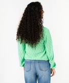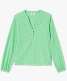 Ce tee-shirt femme s’inspire directement du vestiaire vintage des années 70 avec ses motifs ajourés façon broderie anglaise et ses larges manches resserrées aux poignets. Il arbore un décolleté en V qui se prolonge par trois petits boutons avec boutonnières élastiques. Un tee-shirt à manches longues ajouré, délicatement transparent, à porter sur un top à bretelles ou sur de jolis dessous.