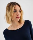 Tee-shirt manches longues en maille côtelée extensible femme[MISSING] bleu marine