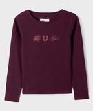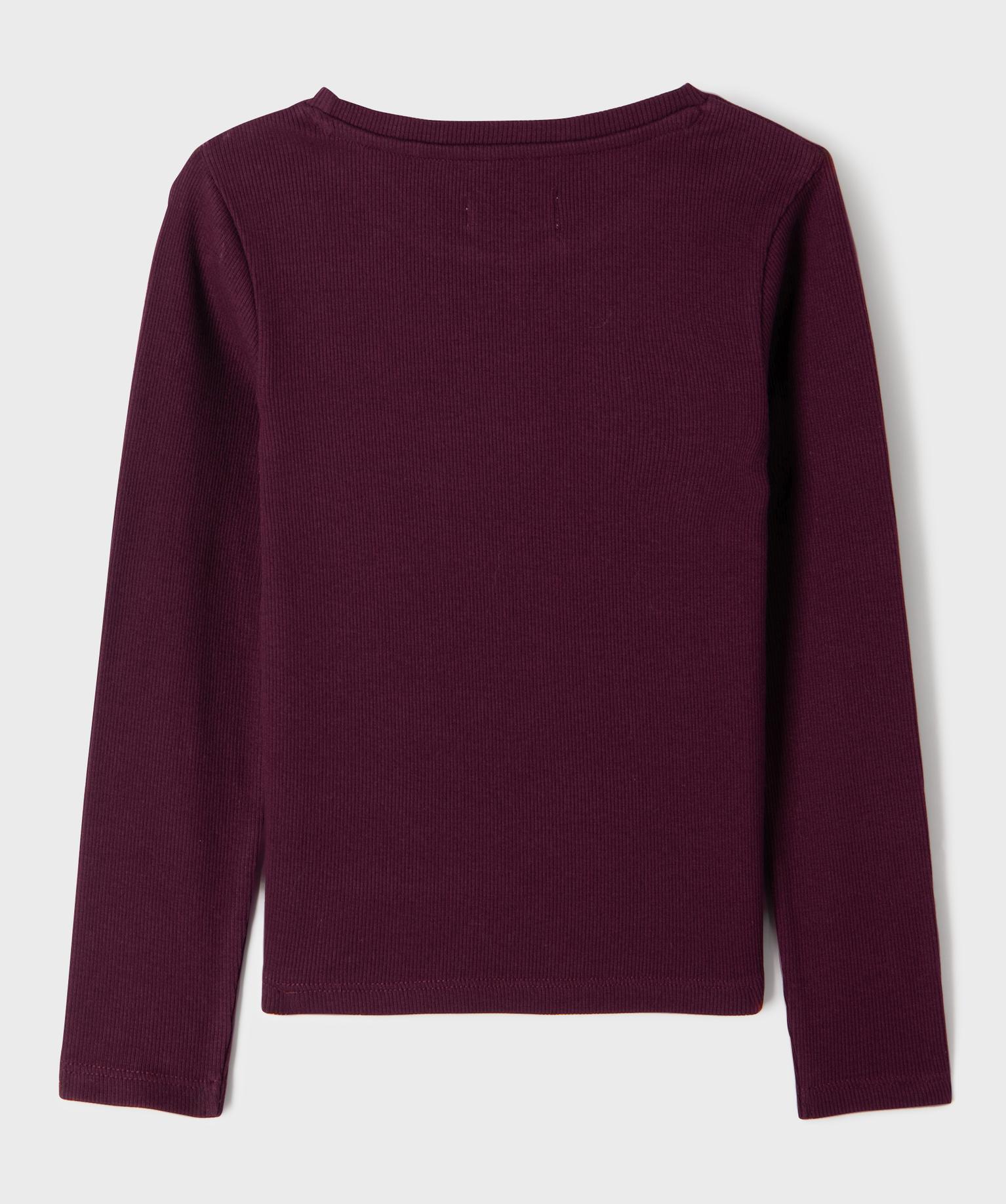 Tee-shirt manches longues en maille côtelée fille violet fonce