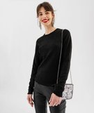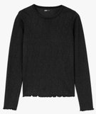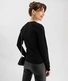 Tee-shirt manches longues en maille côtelée pailletée femme noir