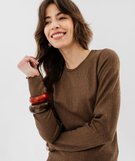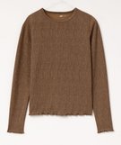 Tee-shirt manches longues en maille côtelée pailletée femme beige