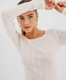 Tee-shirt manches longues en maille fantaisie femme ecru