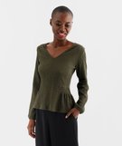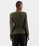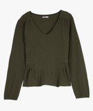Tee-shirt manches longues en maille gaufrée avec basques femme kaki