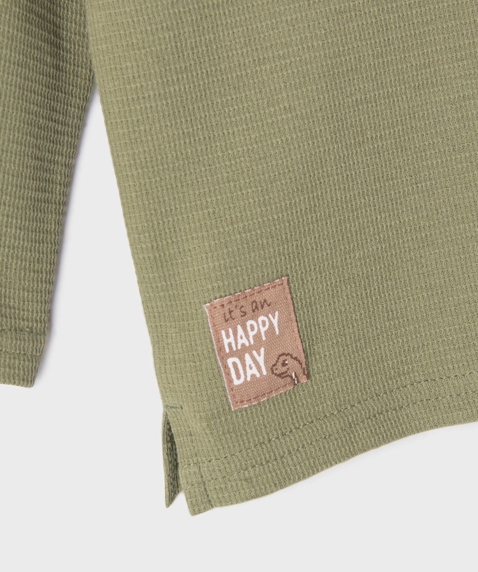 Tee-shirt manches longues en maille nid d’abeille bébé garçon vert