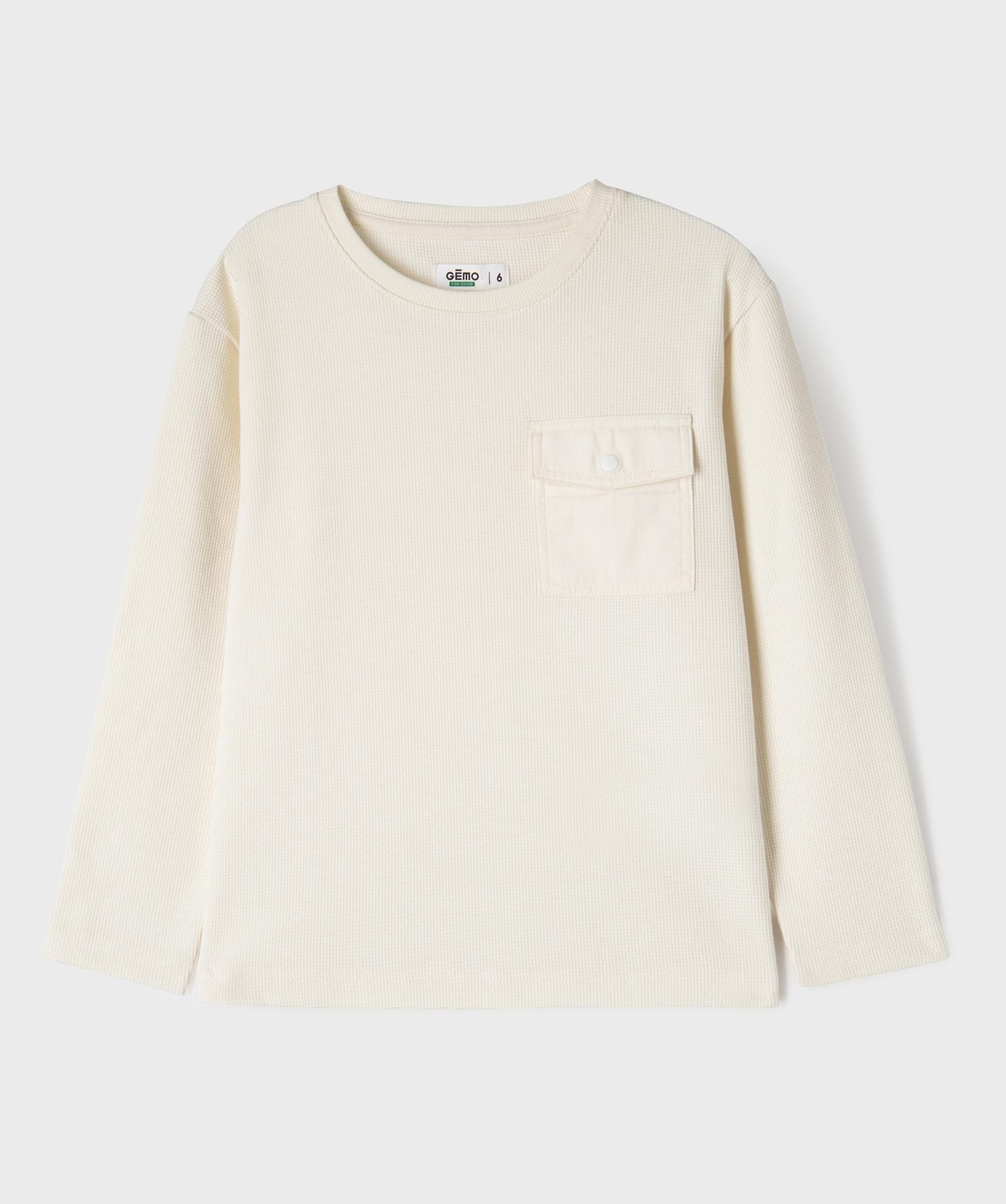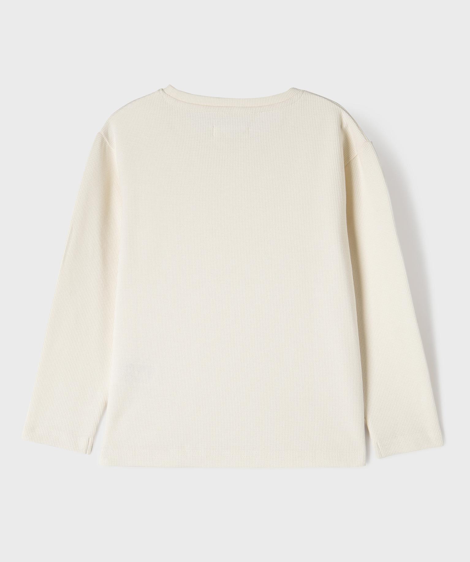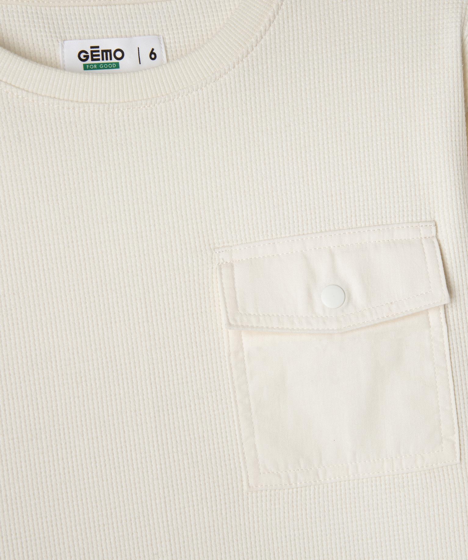 Tee-shirt manches longues en maille nid d’abeille garçon ecru