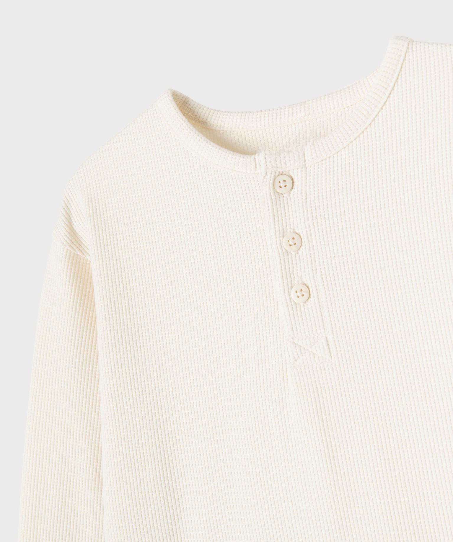 Tee-shirt manches longues en maille nid d’abeille garçon ecru