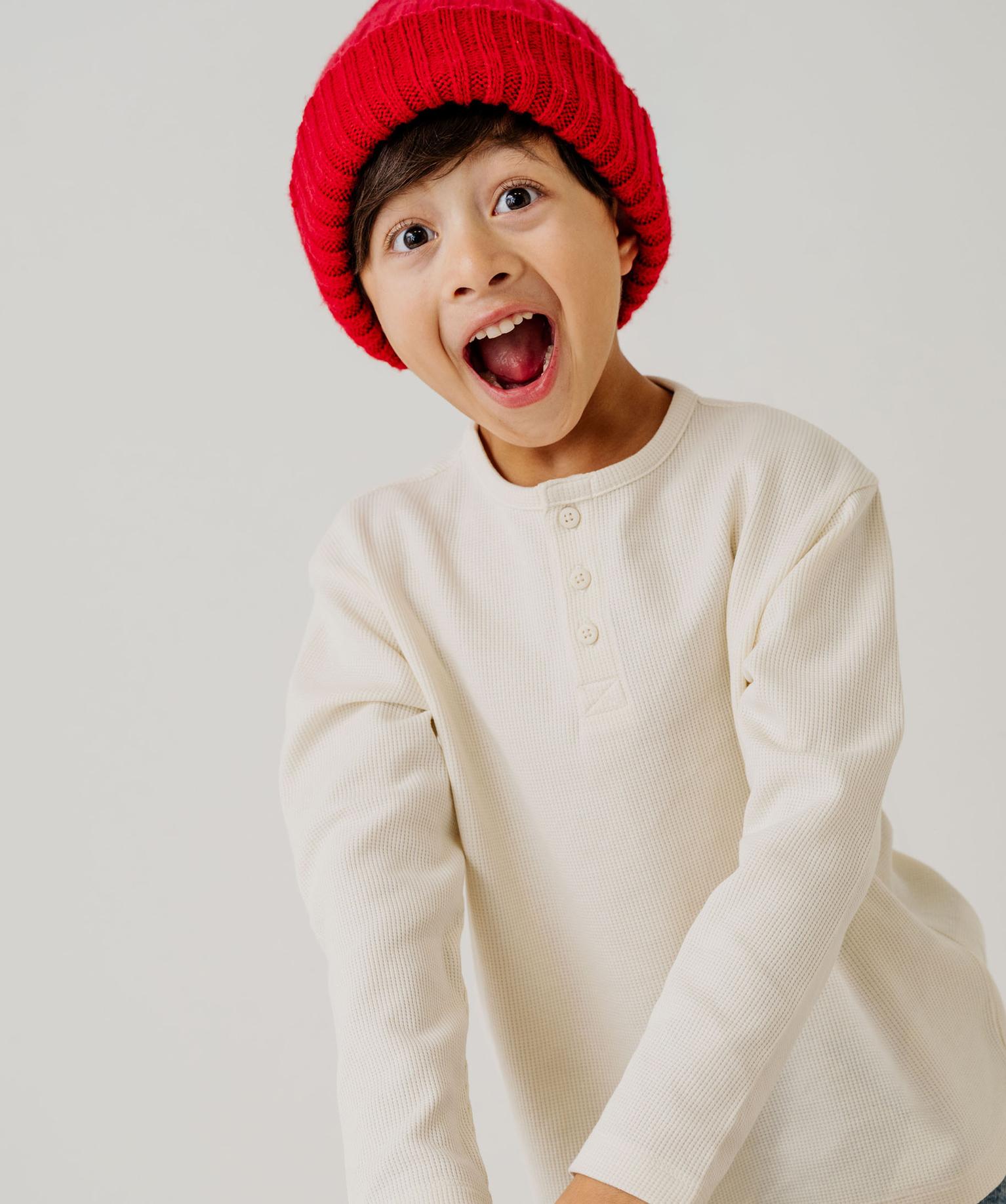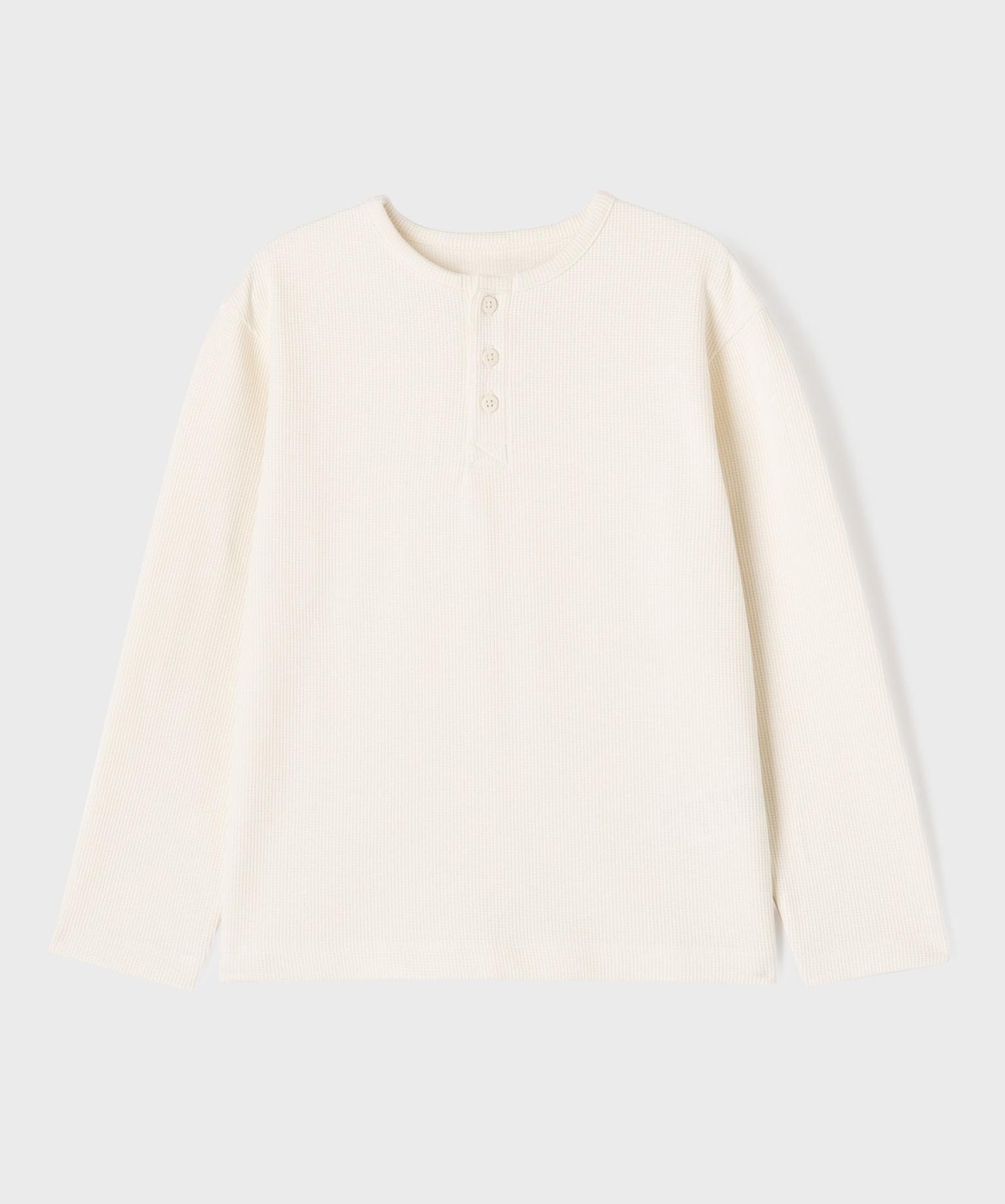 Pour composer des looks casual chic au quotidien pour les enfants, optez pour ce joli tee-shirt à manches longues en maille nid d’abeille. Un tee-shirt garçon doté d’un col tunisien fermé par trois petits boutons ton sur ton. Grâce à sa matière légèrement extensible et sa coupe droite ample, il offre aux enfants tout le confort dont ils ont besoin à l’école ou lors de leurs moments de jeu. Ce tee-shirt uni s'accordera parfaitement avec tous les bas du vestiaire, qu'il s'agisse d'un jean ou d'un pantalon chino.