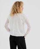Sublimez votre style grâce à un joli jeu de transparence avec ce tee-shirt en maille résille. Un tee-shirt femme qui doit toute son originalité à sa matière souple et confortable inspirée du tulle. Doublé au niveau du buste, il assure une transparence modérée tout en dévoilant délicatement la peau au niveau des manches. Ce tee-shirt à manches longues possède un col rond bien dégagé et des finitions resserrées par élastiques dans le bas qui lui confèrent une allure loose. Un top féminin à porter avec un pantalon palazzo.