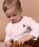 Ce tee-shirt bébé garçon LuluCastagnette se distingue par sa matière twill jersey épaisse et texturée qui reste particulièrement douce et souple. La coupe droite assure une bonne aisance et le col pressionné facilite l’enfilage. Le petit ourson Lulu imprimé en contraste sur l'avant apporte sa petite touche signature discrète. Ce tee-shirt manches longues se porte facilement avec un pantalon chino. Il servira volontiers de petit pull les soirs d'été.