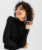 Tee-shirt manches longues et col montant en maille ajourée femme noir