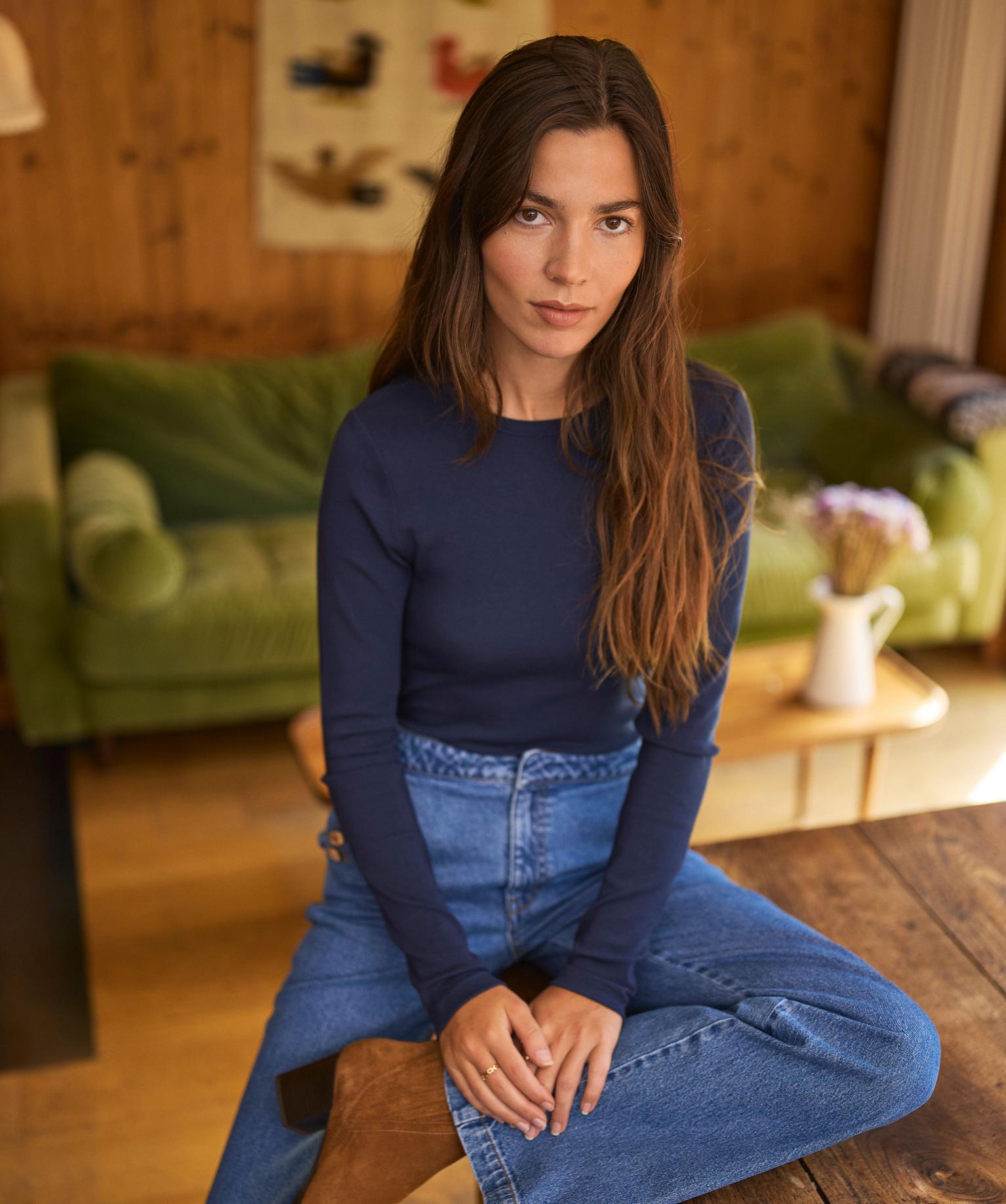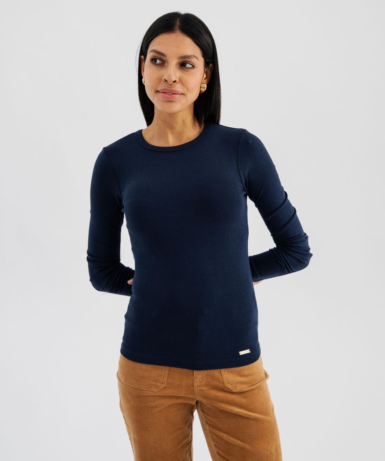 Tee-shirt manches longues et col rond femme - LuluCastagnette bleu marine