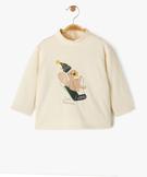 Tee-shirt manches longues et col roulé imprimé bébé garçon ecru