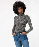 Tee-shirt manches longues et col roulé imprimé femme[MISSING] gris
