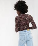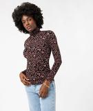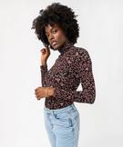 Tee-shirt manches longues et col roulé imprimé femme rose fonce