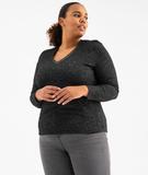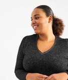Tee-shirt manches longues et col V en maille chinée femme grande taille gris