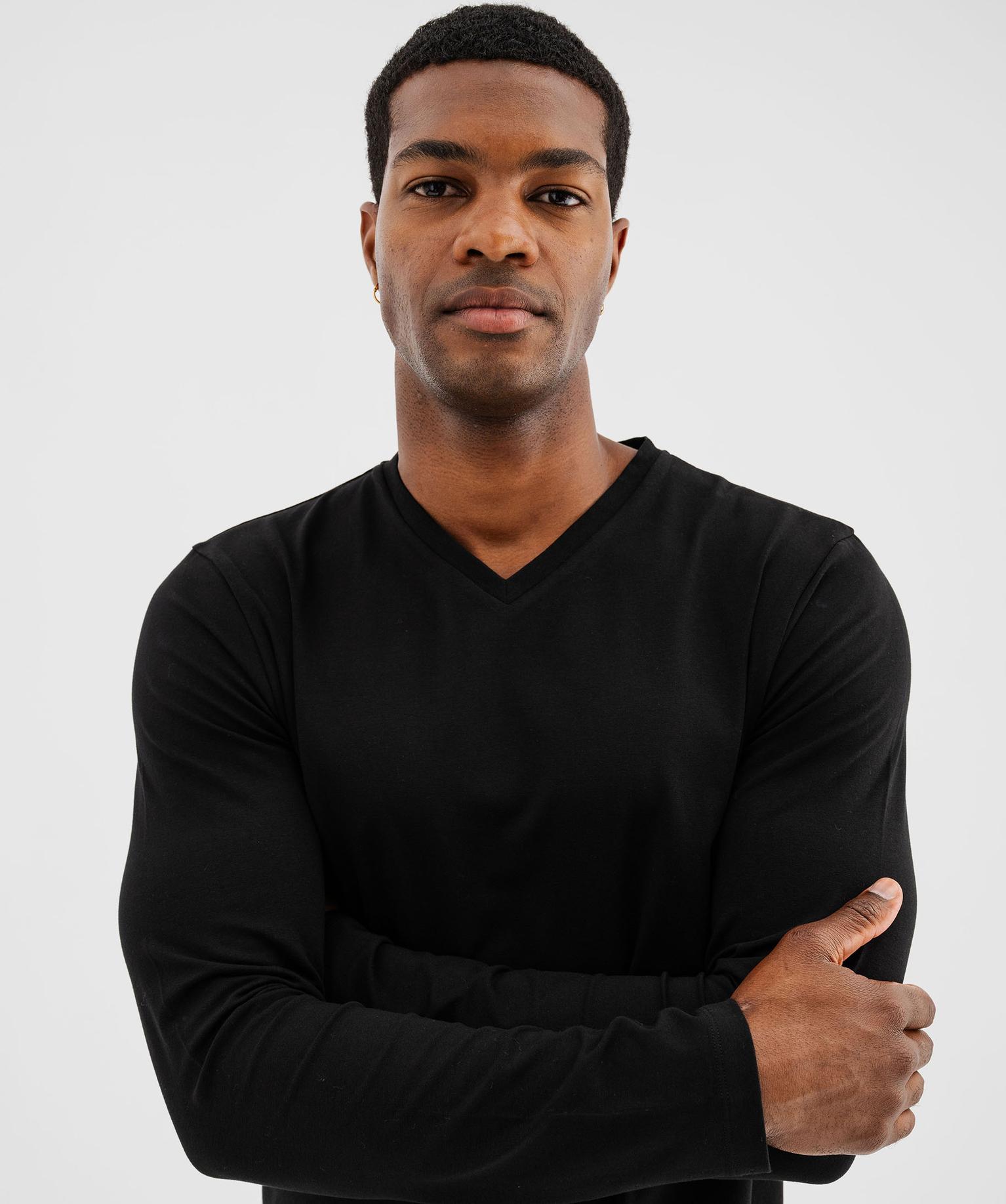 Tee-shirt manches longues et col V homme noir