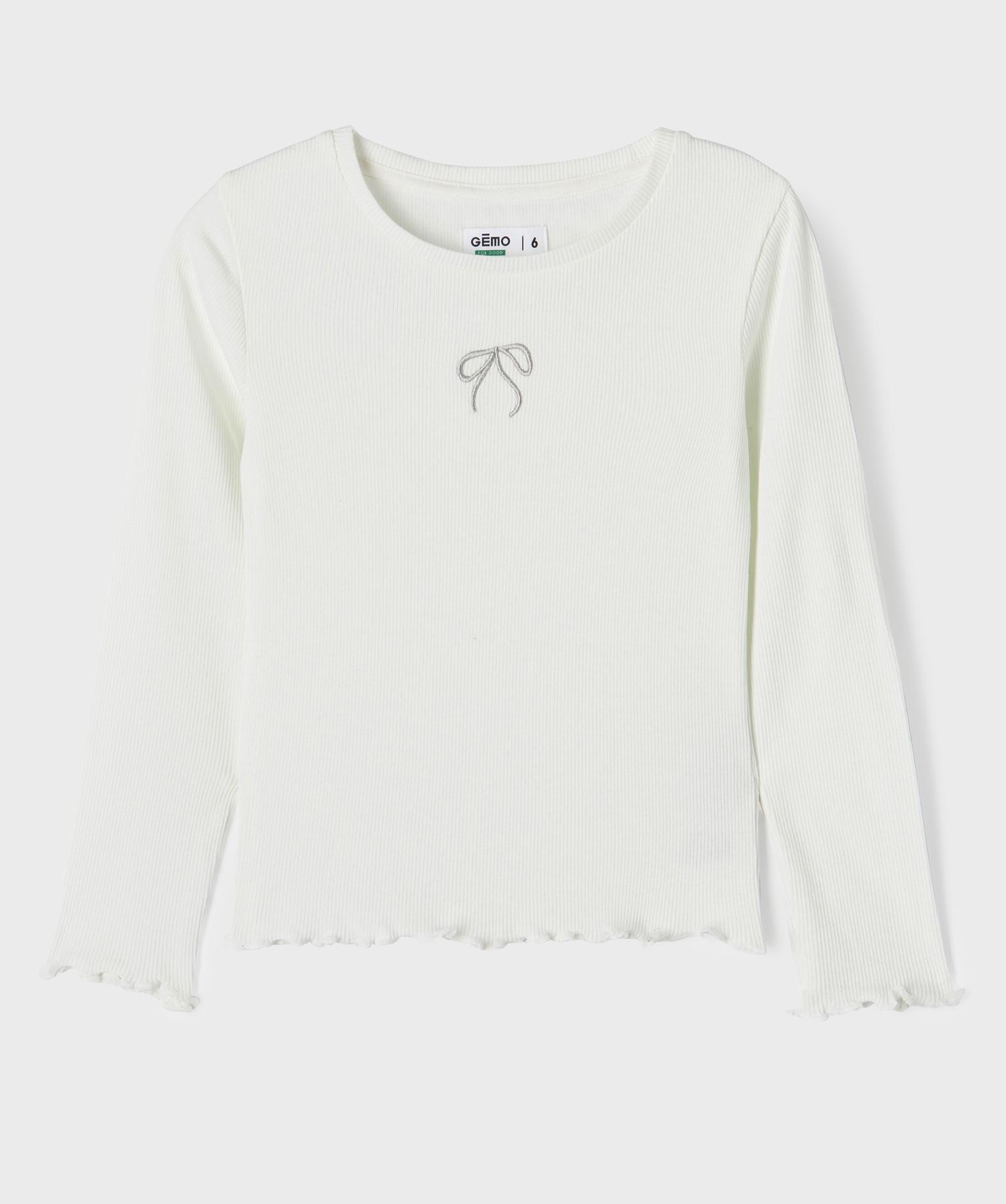Tee-shirt manches longues finitions froncées fille blanc