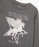 Craquez pour le coloris délavé et les strass brillants de ce tee-shirt à manches longues ! Un top original, avec un côté patiné, qui ajoutera une indéniable touche glam'rock aux tenues des enfants. Le tee-shirt fille est confectionné en coton et décoré d’un large motif licorne sur le buste. Ce tee-shirt à motif s'associe avec tous les bas du vestiaire des jeunes fashionistas : jean, jupe tulle, pantalon parachute ou cargo... Il se porte seul, sous une veste en jean ou un gilet uni. Col rond finition bord-côte. Coupe droite. Dos uni.