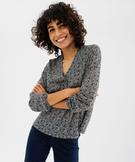 Tee-shirt manches longues imprimé col V fantaisie femme[MISSING] noir