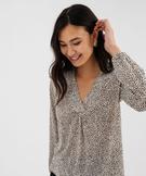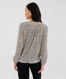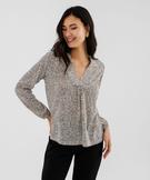 Tee-shirt manches longues imprimé col V fantaisie femme ecru