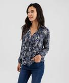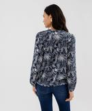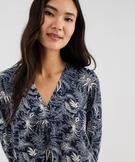 Tee-shirt manches longues imprimé col V fantaisie femme bleu marine