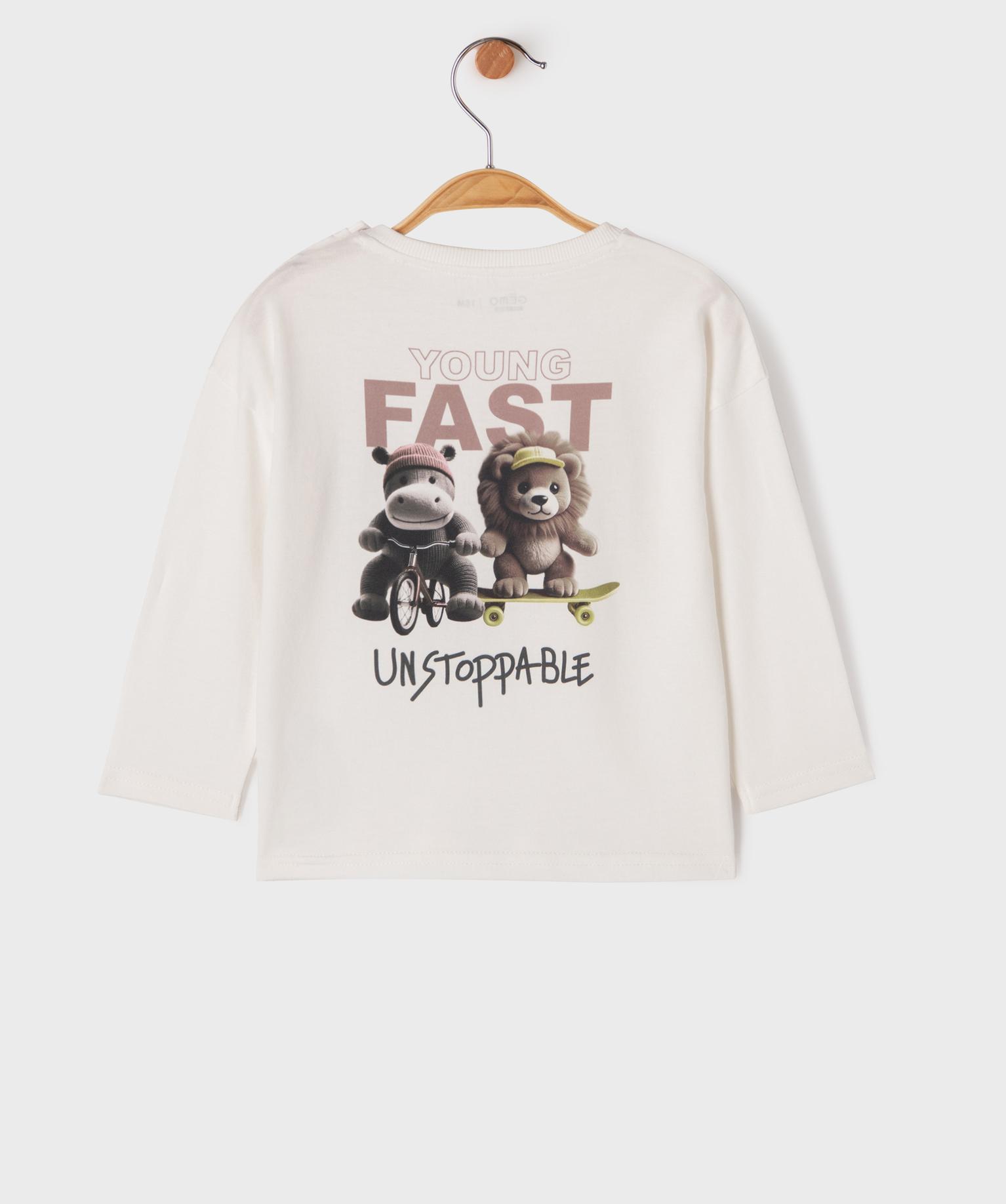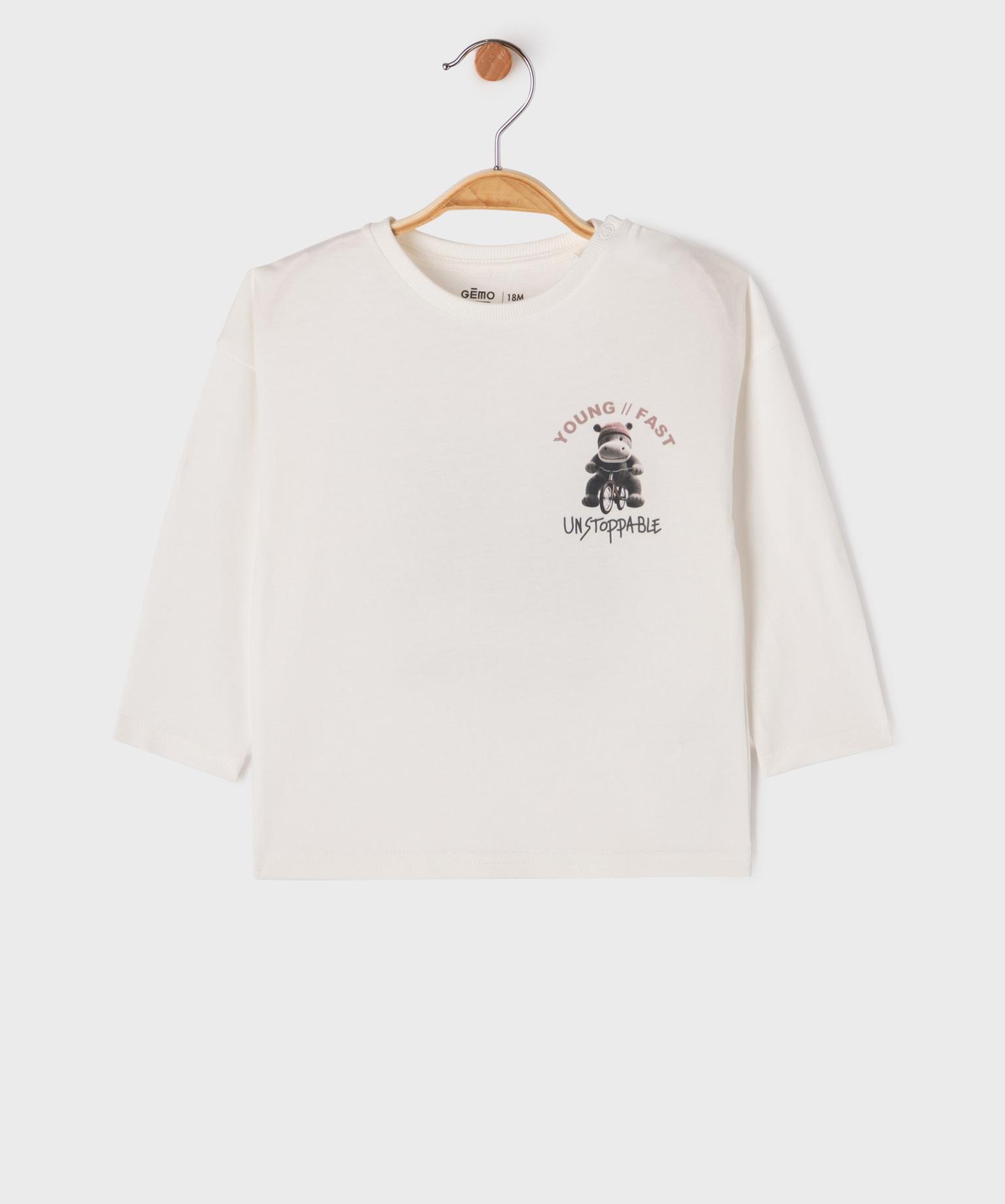 Tee-shirt manches longues imprimé devant et dos bébé garçon blanc
