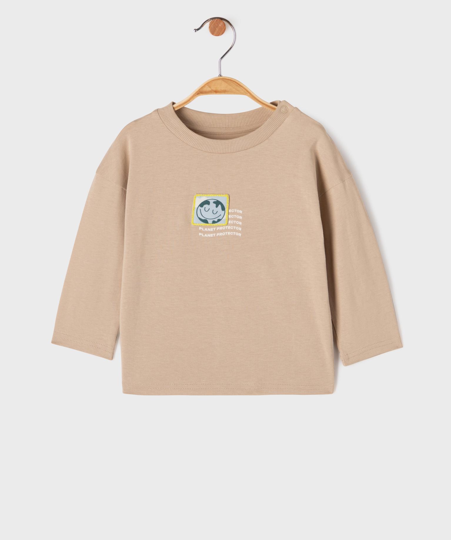 Tee-shirt manches longues imprimé devant et dos bébé garçon beige fonce