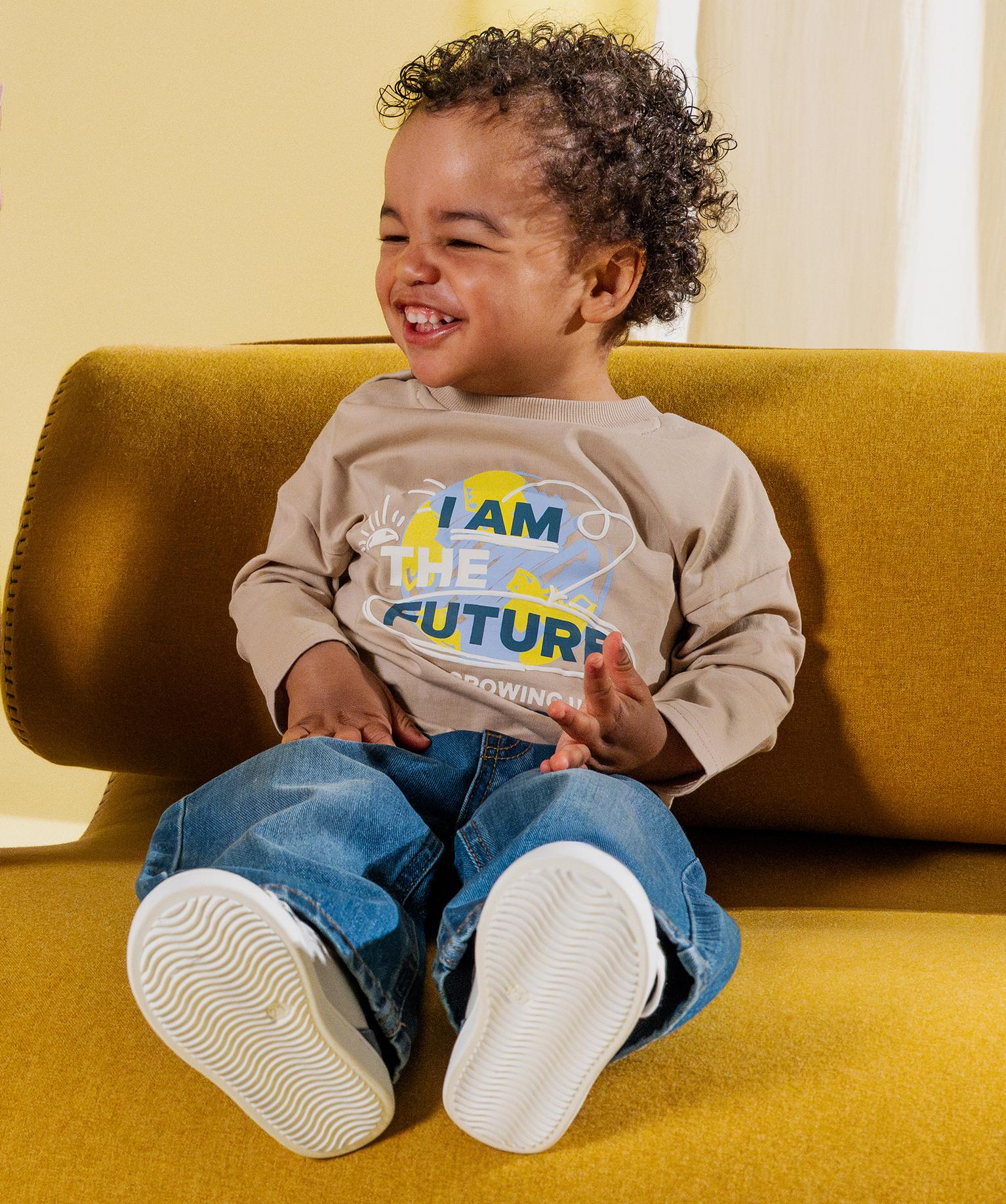Tee-shirt manches longues imprimé devant et dos bébé garçon beige fonce