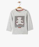 Tee-shirt manches longues imprimé en coton bébé garçon - LuluCastagnette gris chine