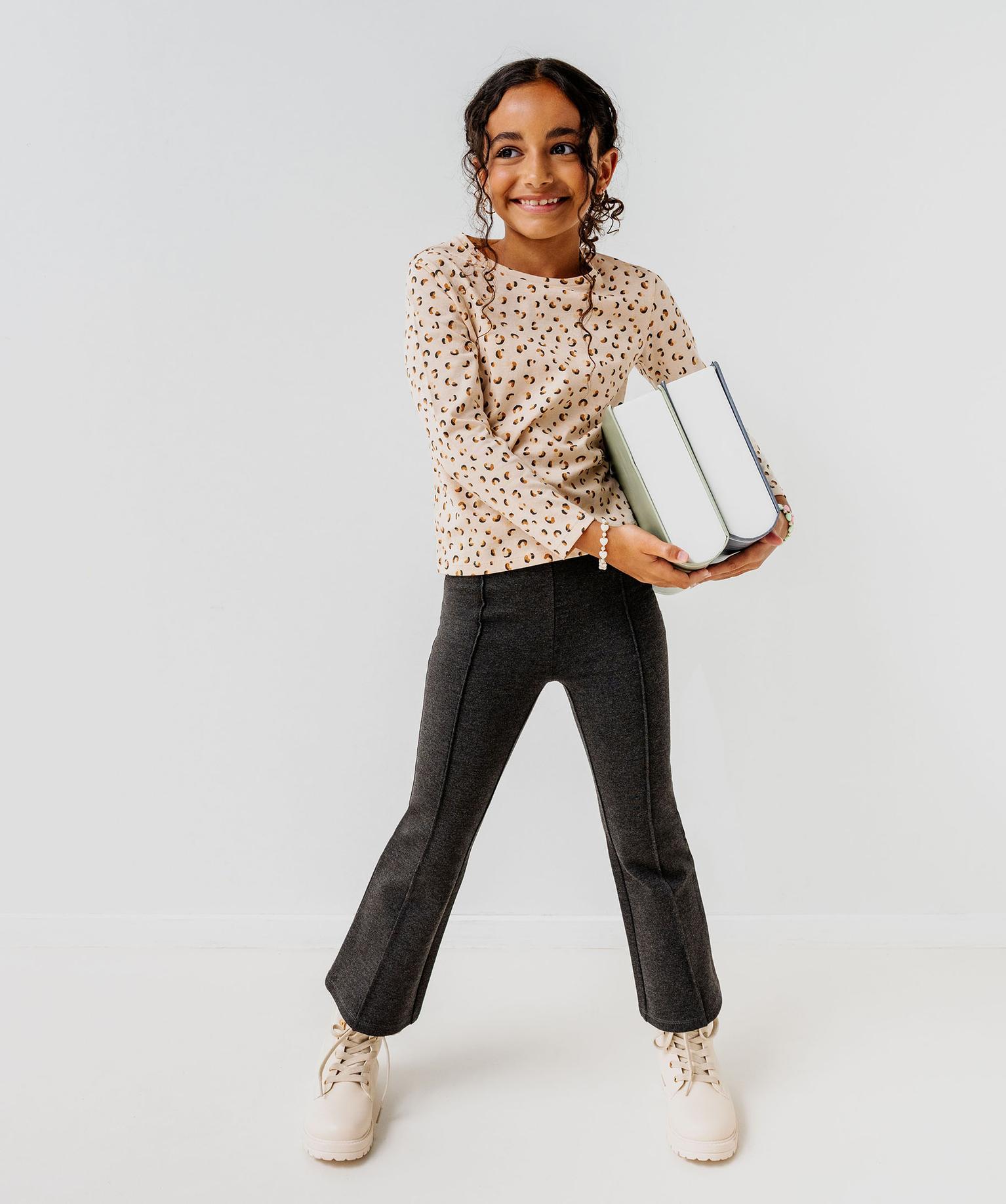 Tee-shirt manches longues imprimé fille beige
