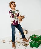 Ce tee-shirt à manches longues va booster les looks des enfants avec ses motifs multicolores. Un tee-shirt garçon avec col rond souligné par un bord-côte, confectionné en coton et coton recyclé. Il apportera une note colorée dans la collection de basiques des enfants. Il se porte avec un pantalon chino et des derbies pour une allure élégante et dynamique, ou avec un jean large et des baskets pour un look streetwear coloré.