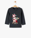 Tee-shirt manches longues imprimé spécial Noël bébé garçon gris fonce