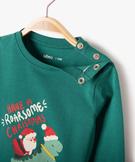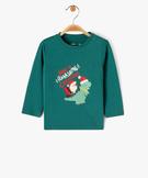 Tee-shirt manches longues imprimé spécial Noël bébé garçon vert