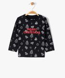 Tee-shirt manches longues imprimé spécial Noël bébé garçon noir