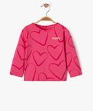 Tee-shirt manches longues motif cœurs bébé fille rose fonce