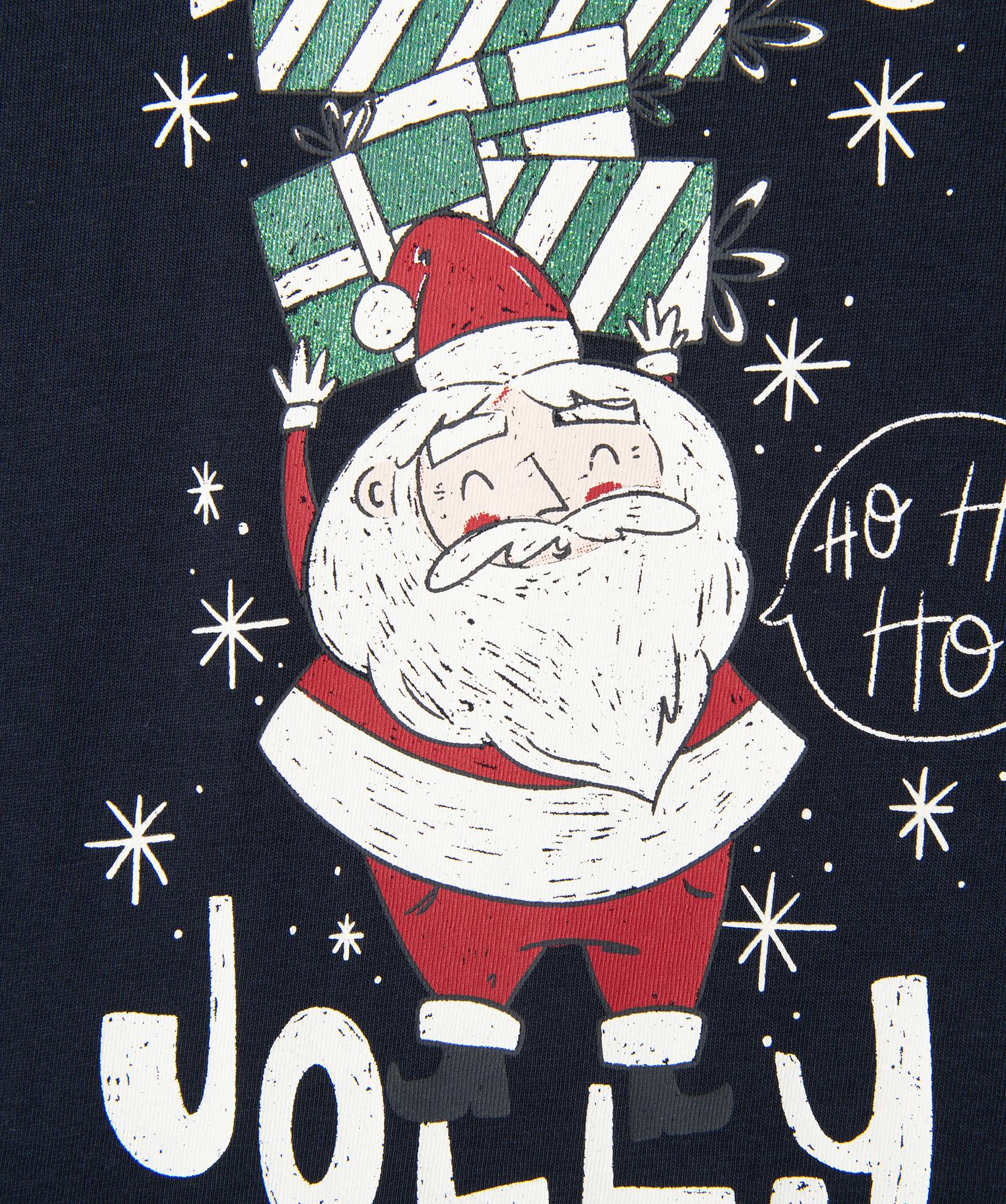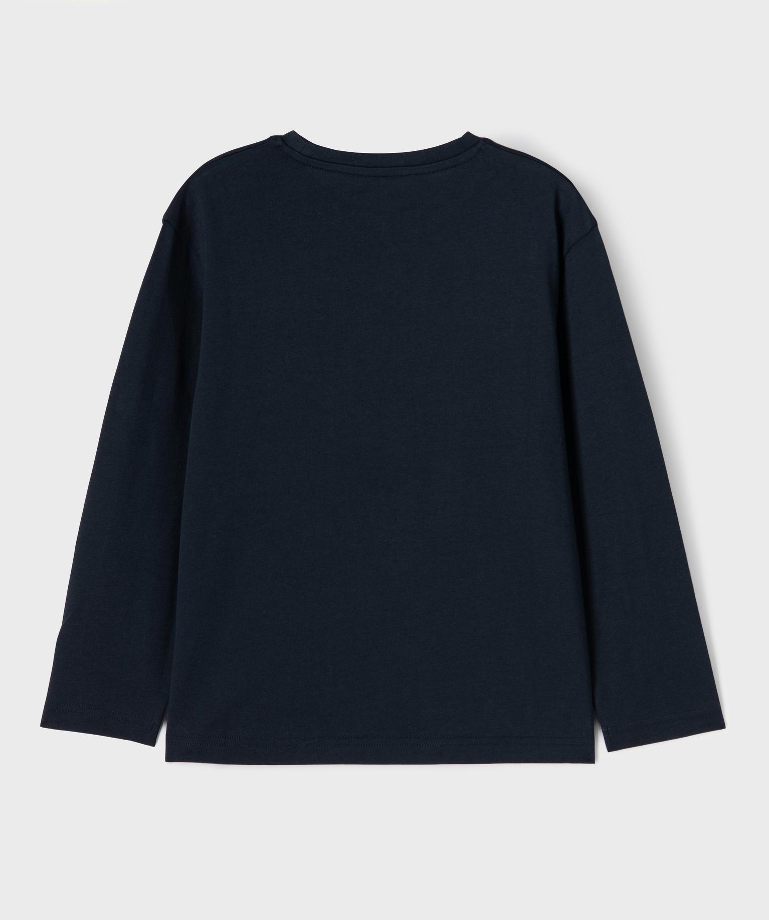 Tee-shirt manches longues motif Noël garçon bleu fonce
