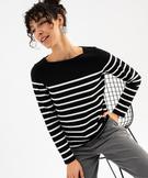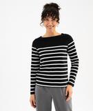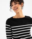 Redécouvrez l'iconique marinière avec ce tee-shirt manches longues en coton épais. Sa coupe droite et ample offre un confort absolu tout en flattant la silhouette. Le col bateau apporte une touche féminine et élégante à votre port de tête. Les rayures classiques, intemporelles et indémodables, créent un jeu de lignes graphiques, faciles à assortir avec un jean comme avec une jupe ou un pantalon uni ! Ce tee-shirt femme est confectionné en coton épais parfait pour les journées fraîches.